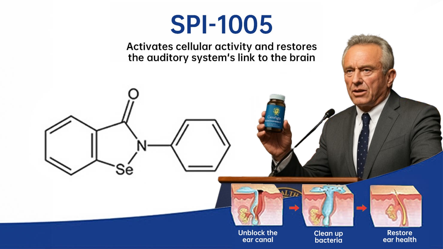 After years of intensive research, a compound called SPI-1005 was identified, which was shown to be effective in inhibiting abnormal cell activity in the temporal lobes and could potentially end patients' tinnitus nightmares permanently. This compound significantly calms the hyperexcitable state of the temporal lobes, reducing false "buzzing" and helping to restore normal auditory processing, thereby eliminating tinnitus.